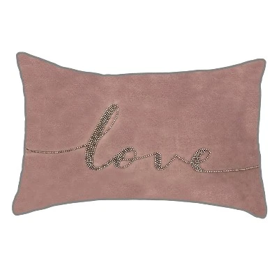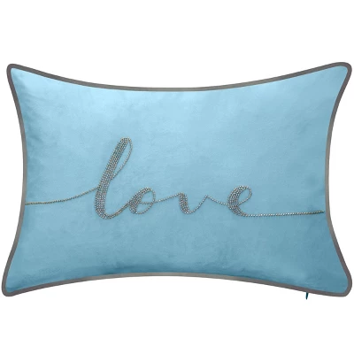 12″x18″ Poly-Filled Beaded ‘Love’ Luxe Velvet Lumbar Throw Pillow – Edie@Home