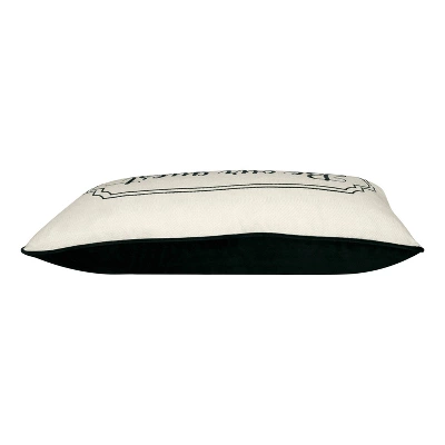 - This Edie@Home pillow showcases script embroidery on a neutral oyster ground with black letters