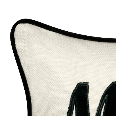 - This Edie@Home pillow showcases lovely “Mr & Mrs” cursive embroidered applique on a neutral oyster ground with black and gray letters