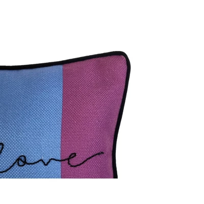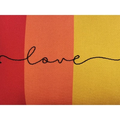 - Fun and colorful pillow features “Love is Love” line work embroidery on the front on a bright rainbow ground