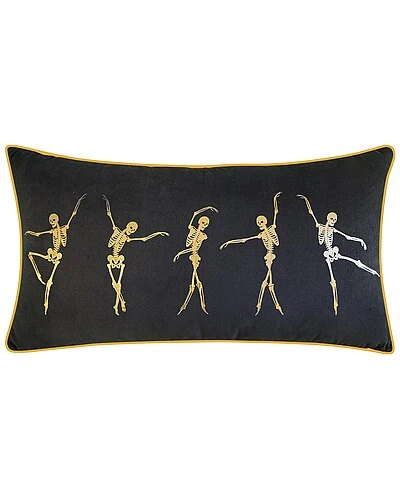 - Design details: the halloween collection by edie@home is a stylish way to make your home festive during the holidays with chic prints and designs in cozy fabric. the dancing skeleton throw pillow features a hilarious dancing skeleton ballet troupe in gold over rich black velvet. each lumbar pillow measures 14 in. x 26 in. 100% polyester. convenient zipper closure.