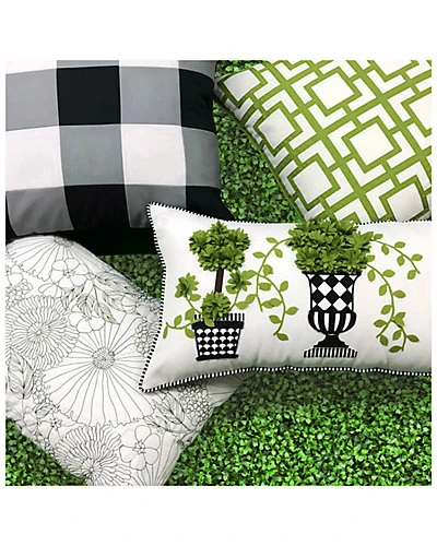 - The Outdoor Pillow Collection combines fresh, stylish designs and high-quality fabrics made to withstand the elements of the outdoors. The Dimensional Indoor & Outdoor Potted Topiary Decorative Pillow is perfect for nature lovers and will effortlessly spruce up your decor with rich green, piped edges and dimensional detailing. Outdoor decorative pillow measures 13″ x 25″. Convenient zipper closure. Easy spot clean. 100% Polyester. Can be used indoors or outdoors.