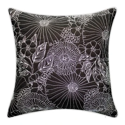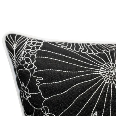 Embroidered Fine Line Floral With Welt Indoor/Outdoor Throw Pillow – Edie@Home