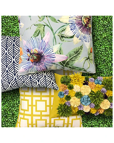 - The Outdoor Pillow Collection combines fresh, stylish designs and high-quality fabrics made to withstand the elements of the outdoors. The Floral Bouquet Dimensional Indoor & Outdoor Decorative Lumbar Pillow will bring the garden right into your home with gorgeous dimensional roses in bold, fun colors. Available in fuchsia/magenta and leaf/citron. Plush outdoor decorative pillow measures 12″ x 20″. Convenient zipper closure. Easy spot clean. 100% Polyester. Can be used indoors or outdoors.
