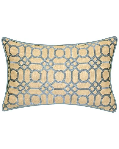 - Design details: edie@home indoor & outdoor decorative pillow collection combines modern, classic and contemporary style to create unique designs for your home. each pillow is crafted from high quality weather-resistant fabric that can be placed outdoors on your backyard patio, front porch or deck but look just as good on your living room sofa and couch, master bedroom, guest room, nursery or your favorite armchair. zipper closure and easy spot clean keep the pillows looking good as new year after year. the raffia embroidered geometric decorative lumbar pillow uses raffia to showcase a rustic yet elegant design perfect for home fashion enthusiasts. available in white/navy, black/natural and capri/natural to complement any existing home decor. 100% polyester. easy spot clean. measures 13×21.