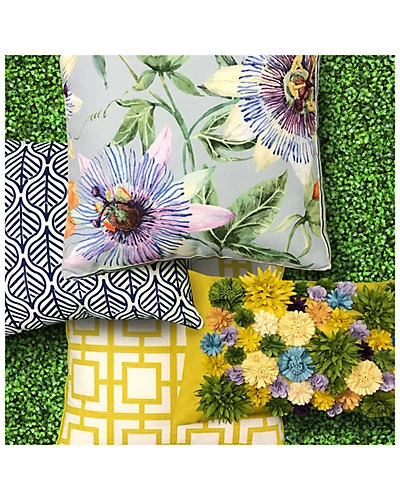 - The Outdoor Pillow Collection combines fresh stylish designs and high-quality fabrics made to withstand the elements of the outdoors. The Pretty Protea Ribbon Indoor & Outdoor Decorative Pillow features a gorgeous floral print against a neutral grey ground with a woven ribbon gusset. Reverse features a cute additional flower for an unexpected spring-inspired surprise. Perfect for indoors or outdoors each plush decorative pillow measures 20″ x 20″. Stitched closure. Easy spot clean. 100% Polyester is colorfast durable and weather-resistant.