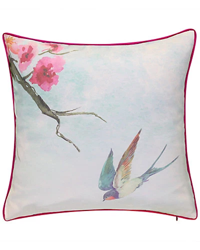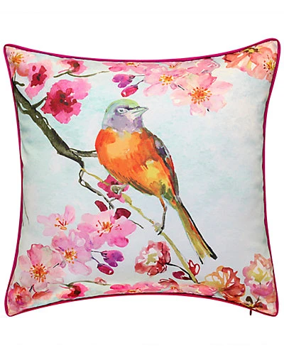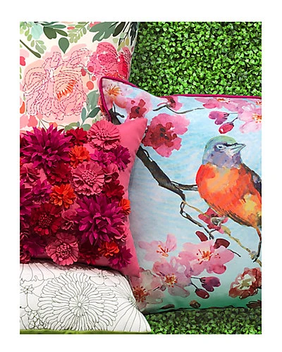 - The Outdoor Pillow Collection combines fresh, stylish designs and high-quality fabrics made to withstand the elements of the outdoors. The Reversible Birds Indoor/Outdoor Decorative Pillow showcases a gorgeous spring-inspired print with colorful cherry blossom flowers and a beautiful swallow bird. Durable piped edges complete the look. Plush outdoor decorative pillow measures 20 in. x 20 in. Convenient zipper closure. Easy spot clean. 100% Polyester. Can be used indoors or outdoors.