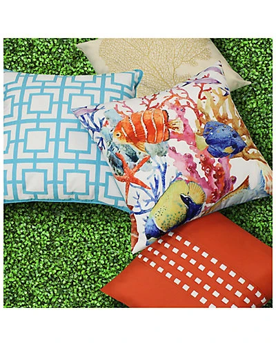 - The Outdoor Pillow Collection combines fresh, stylish designs and high-quality fabrics made to withstand the elements of the outdoors. The Sealife Beaded & Embroidered Indoor/Outdoor Decorative Pillow features a fun summer-inspired under-the-sea print with bright coral and fish accented with intricate beading and embroidery. Perfect for indoors or outdoors, each plush decorative throw pillow measures 20 in. x 20 in. Stitched closure. Easy spot clean. 100% Polyester is colorfast, durable and weather-resistant.